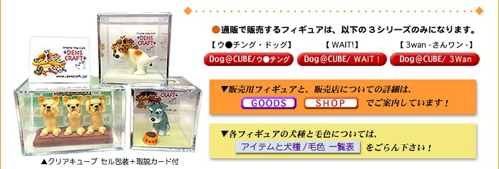≫【GOODS】では現在の販売用フィギュアの画像、仕様や犬種・毛色などご紹介。